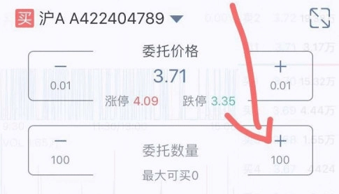 在弹窗的买入信息区域,点击“+”号来选择买入价格和买入数量。