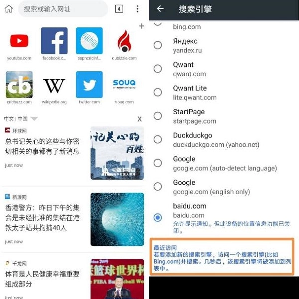 用户能够自主选择不同的搜索引擎进行切换,若当前没有所需的搜索引擎,也支持自行添加新的搜索引擎。