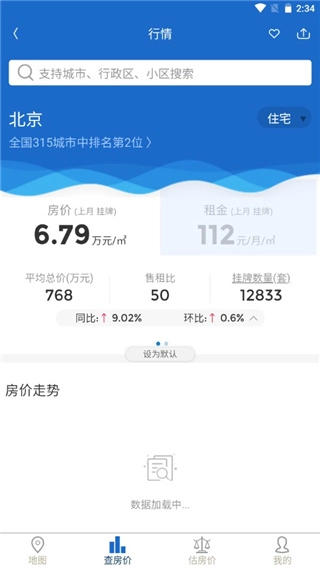 在查房价界面中可以直接搜索你想看房价的地区;