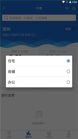 而且还可以查看商铺和办公楼的房价或房租;