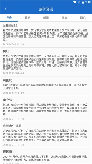 在我的页面中可以看和房价相关的新闻资讯。