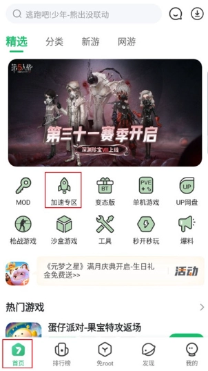 您可以根据您的具体语境和偏好选择最合适的版本。在手机上完成7723游戏盒的安装后,进入软件主界面,依次找到“首页”板块下的“加速专区”。