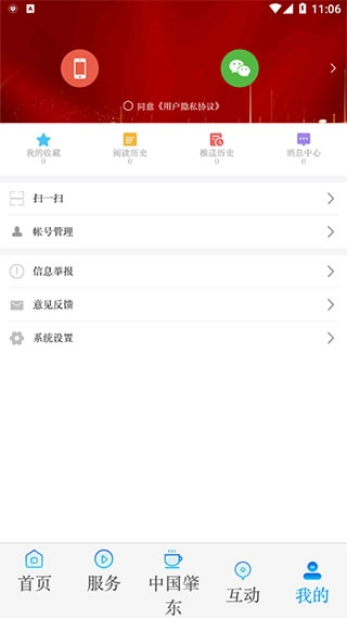 点击我的登陆后即可查看各种历史记录或意见反馈。