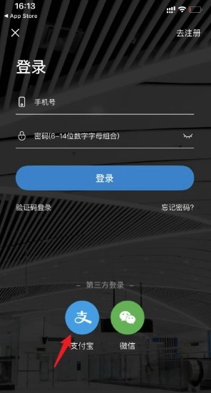 2、在登录界面,点击下方的支付宝图标。