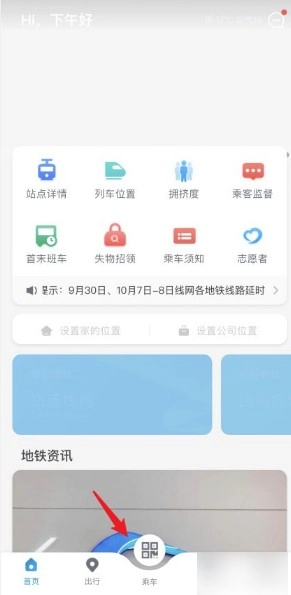 4、登录成功后,点击下方的乘车图标。