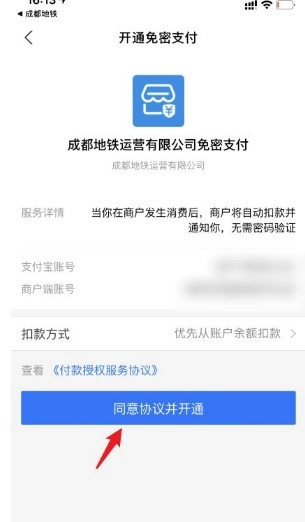 6、之后,在开通免密支付界面,点击下方的同意协议并开通。