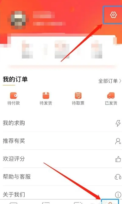 1.切换到【我的】页签,点击右上角设置图标进入