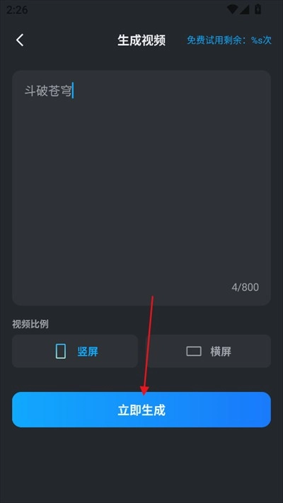 2、输入框中输入想要的视频关键词,点击一键生成;