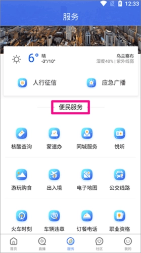 1、首先,打开软件,在服务页面可以看到很多便民服务,点击其中一项即可开始服务;