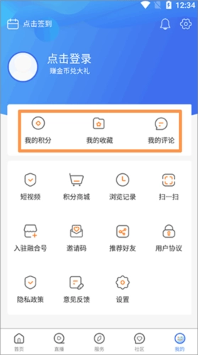 2、然后在我的一栏可以看到自己的积分、收藏和在社区的评论等内容;