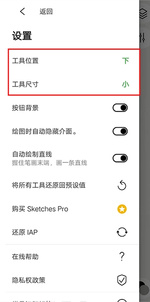 3、在设置页面点击工具尺寸和位置。见下图