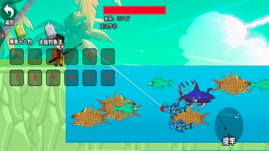 3、滑动屏幕中的元素,进行钓鱼闯关