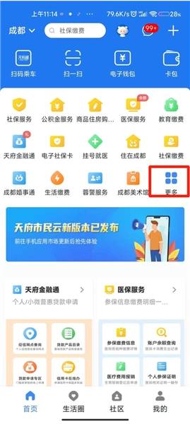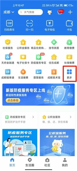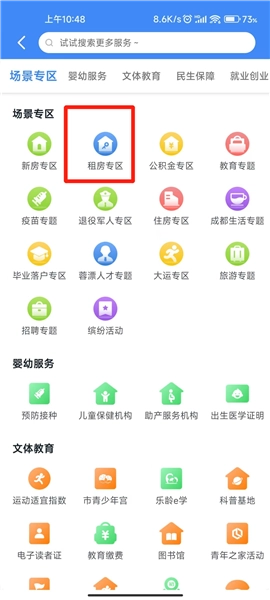 1.打开天府活力市场手机版,点击【更多】找到【租房专区】