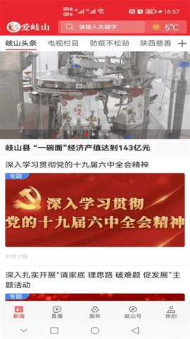 开设了新闻、直播、电视、广播、服务、“岐山号”等栏目,