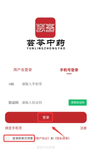 3、输入手机号码获取验证码登录。