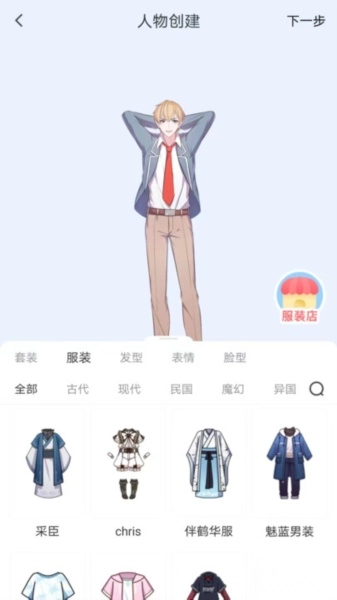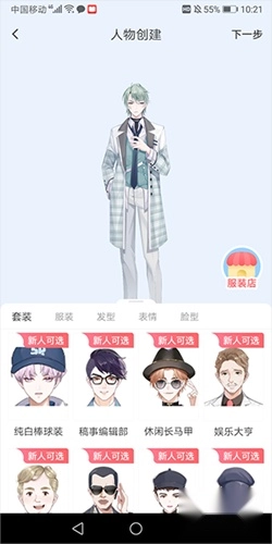 2、挑选自己钟爱的脸型与发型,再搭配上恰当的表情,就能完成一个角色的创作。