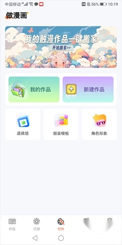 用户进入应用的创作界面后,首先点击【新建作品】按钮。
