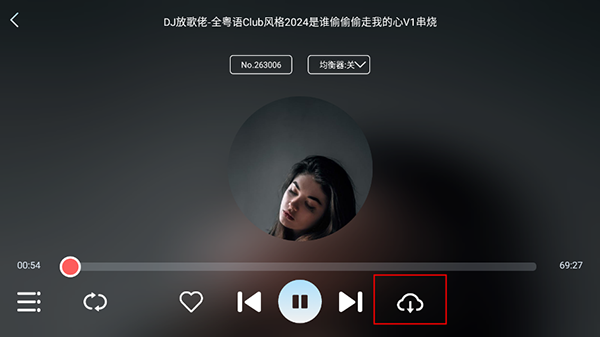 1、首先我们打开软件,挑选一首自己觉得好听的歌曲,接着找到界面里那个向下的箭头图标,点击它就可以了。