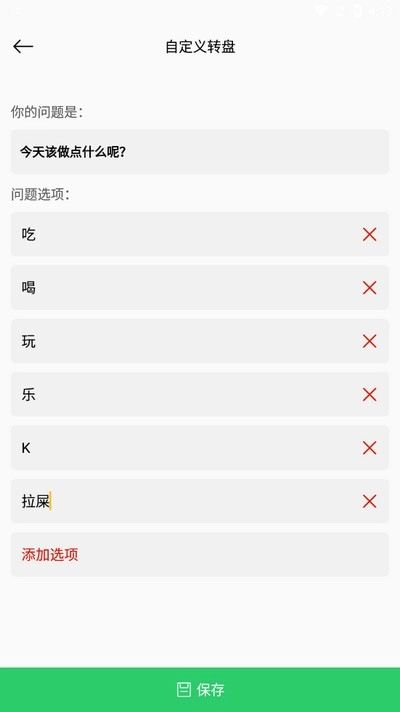 2、自定义设置:用户能够自主设定问题以及对应的选项,借助转盘的随机机制来做出决定。