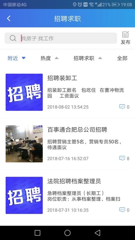 可以直接搜索自己需要的房子和工作,能够迅速定位到相关内容。