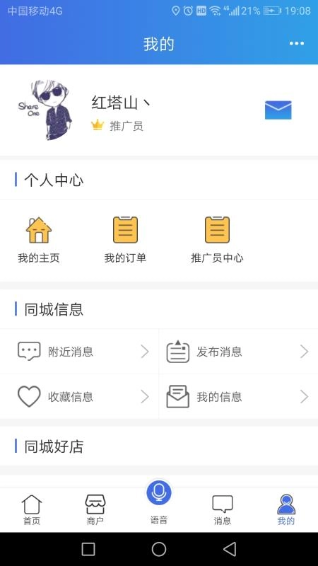 在个人中心里,你可以查看自己的订单,也能查看自己的消息。