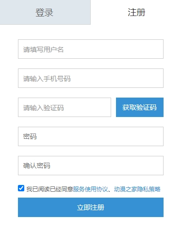 1.进入软件动漫之家注册页面,输入基本信息后点击“立即注册”