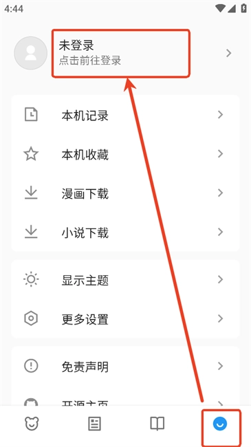 3.接着打开动漫之家x软件,点击我的--“未登录”