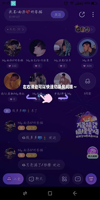 ·操作模式跟抖音差不多,左右滑动可以快速切换房间;