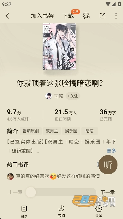 资源亮点:涵盖都市、言情、玄幻、悬疑、历史等数十类热门题材,收录海量正版小说,既有经典佳作,也有新锐作家的全新作品,每日更新章节内容,保证资源的时效性与丰富度,可满足不同年龄段、不同阅读偏好用户的需求。