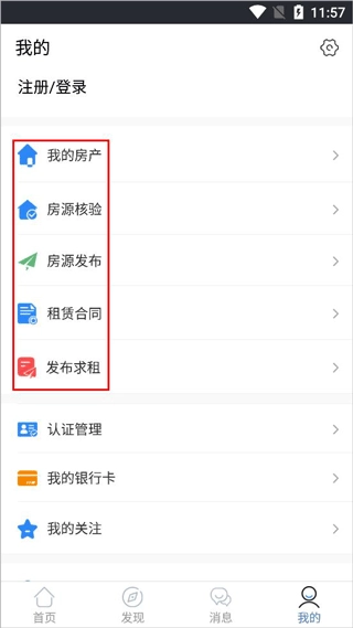 3、进入“我的”页面,能够查看个人名下房产、租赁合同、发布的求租信息以及其他相关资质材料。