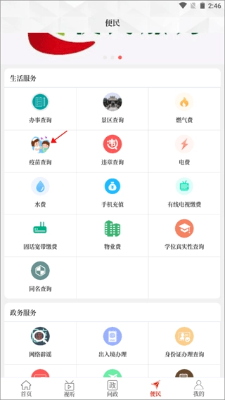 1、同样还是在【便民】界面,点击“疫苗查询”。