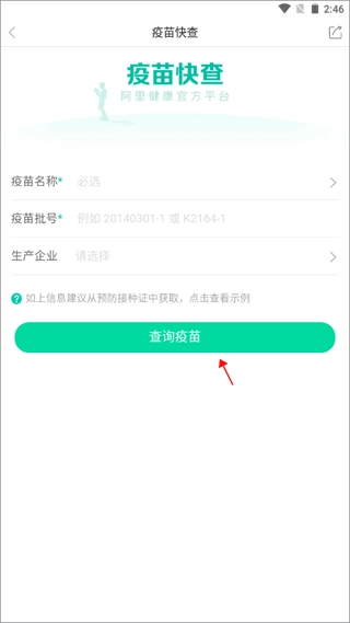 2、输入疫苗的名称、批号和生产企业,最后点击查询疫苗就能看到相关的信息了。