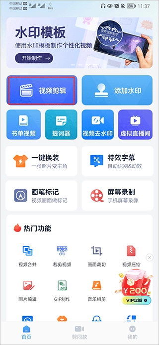1、打开微商视频助手后,在首页中点击视频剪辑