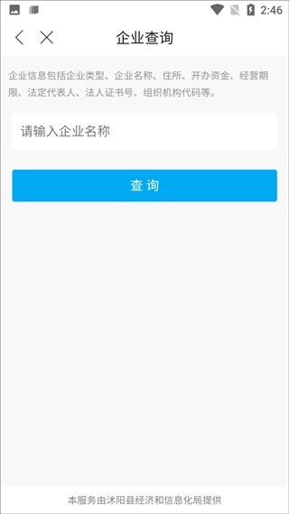 3、进入企业查询界面,输入企业名称,点击【查询】选项。