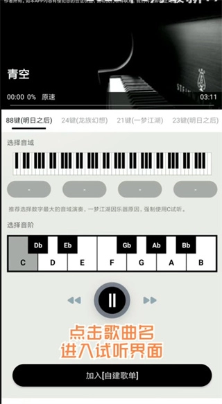 3、用户可以在软件中自建歌单,可以在里面弹奏自己喜欢的钢琴曲。