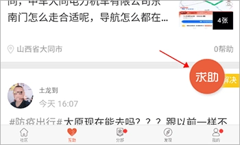 1、打卡软件后,点击在求助界面,点击右下角的“求助”