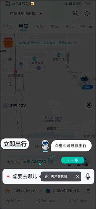 3、车辆添加完成后,就可以在首页中输入你要出行的地点然后导航出行