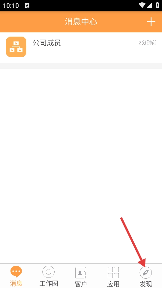 1、在消息中心页面点击右下角【发现】,即可进入发现页面。