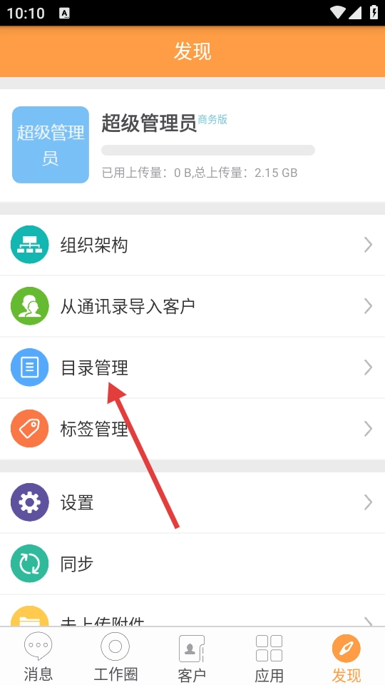 2、在发现页面点击【目录管理】,即可进入目录管理界面。