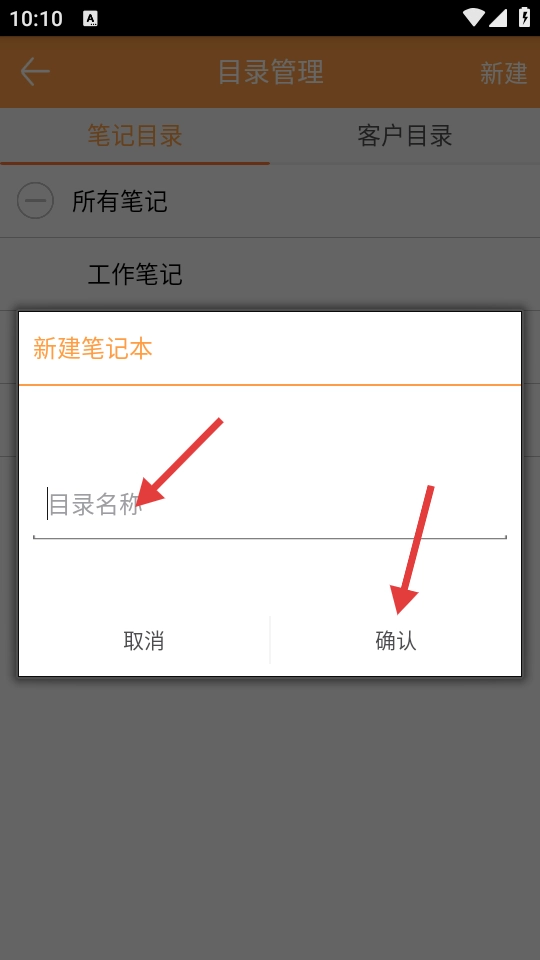 4、在新建笔记本弹窗的【目录名称】输入框中输入名称,点击【确认】即可完成新建操作。
