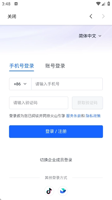3、然后需要进行账号登录,如图所示;这里能通过手机号,抖音账号等方式进行登录;