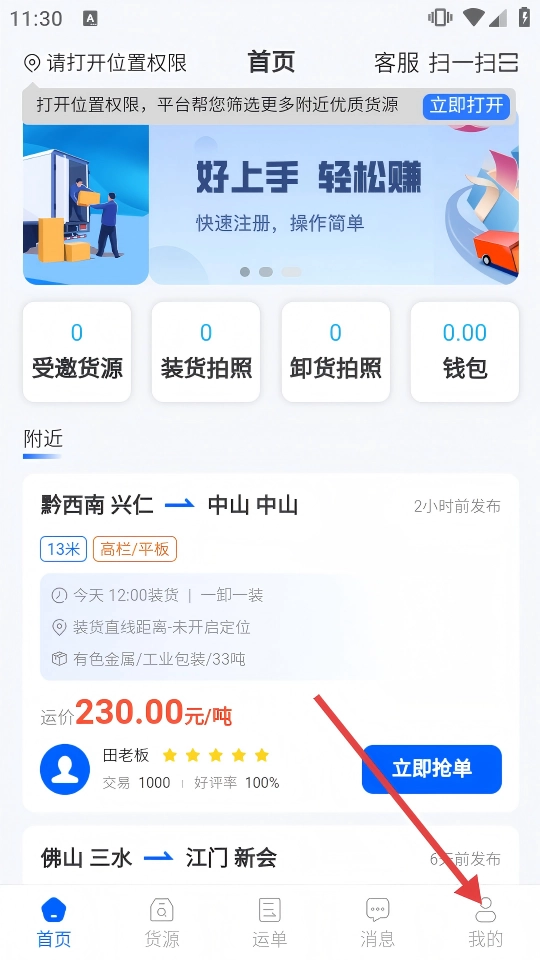 1、订单处理:于货源大厅筛选目标运输任务,查看货物详情及路线信息后确认接单,系统会自动生成电子运输协议。
