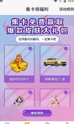 2、在集卡任务里面可以领取金币、皮肤等等;