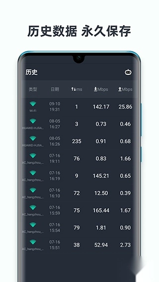 3、快速查看历史测试结果,方便你挑选网速最快的WiFi来连接。