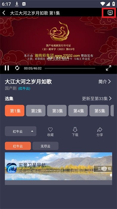 2、进入播放界面后,我们需要点击正在播放的视频内容,调出【投屏】功能。