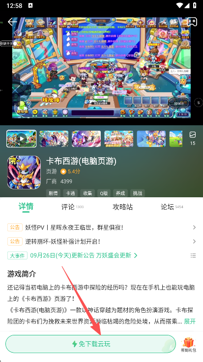 3、找到想玩的游戏进入,点击免云玩即可开始游戏。