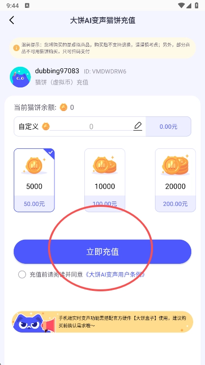 2、一般充值5000猫饼即可