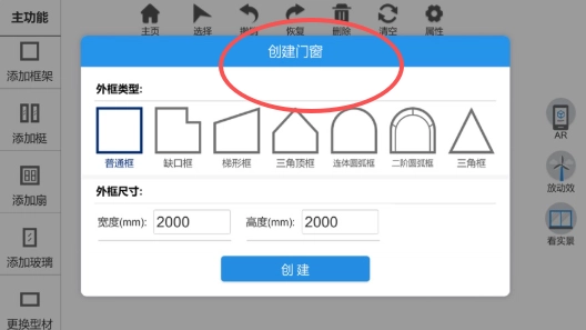1、这里我们进入后,点击创建门窗