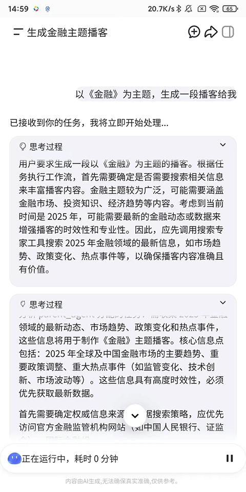 生成超拟人播客:输入主题或文案,即可生成超拟人音频,还能对音色、语速进行调节。