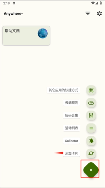 1、点击主界面右下角的加号图标,点击添加卡片